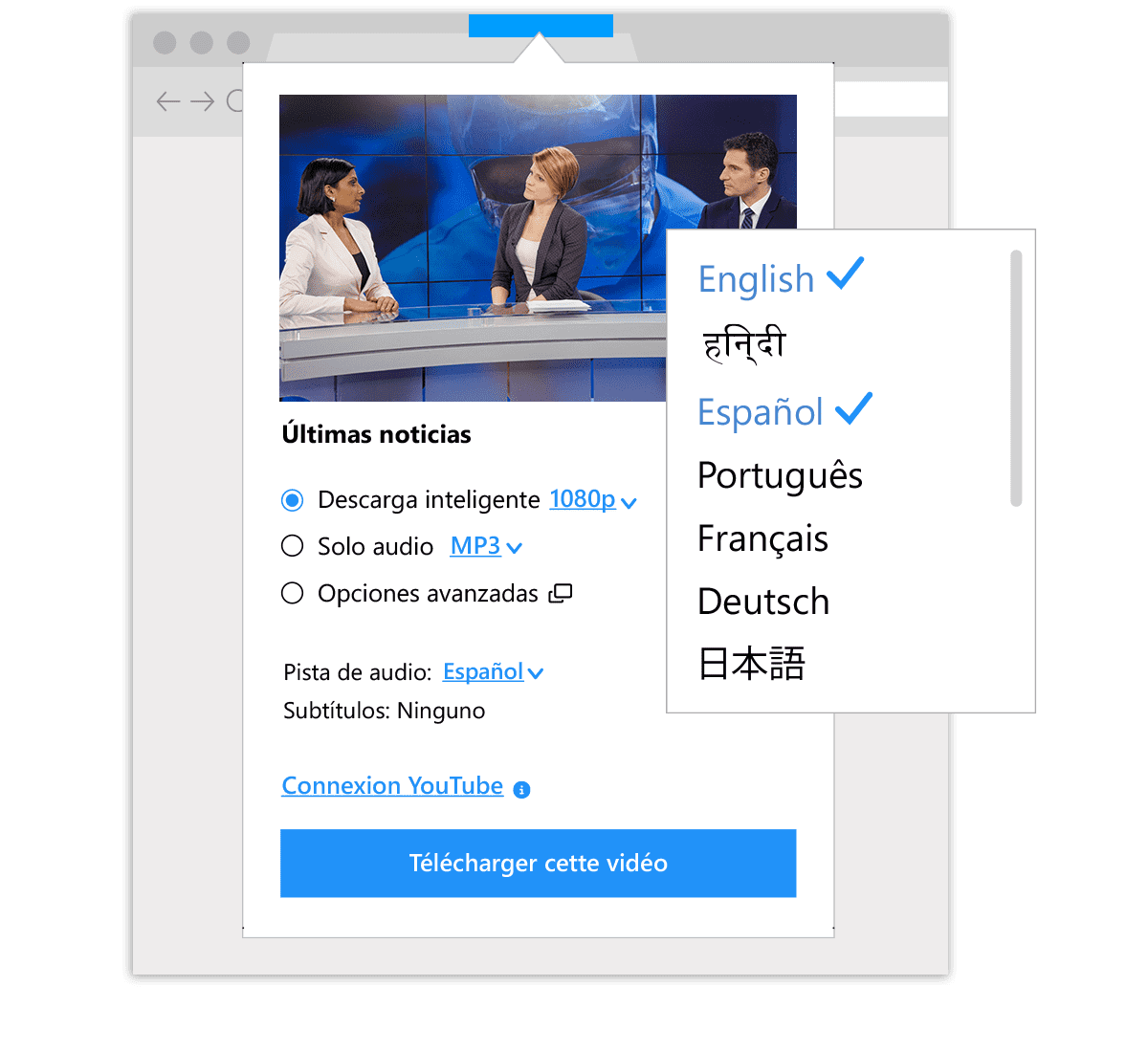 Selecciona tu pista de audio preferida al descargar o reproducir – ideal para vídeos multilingües.